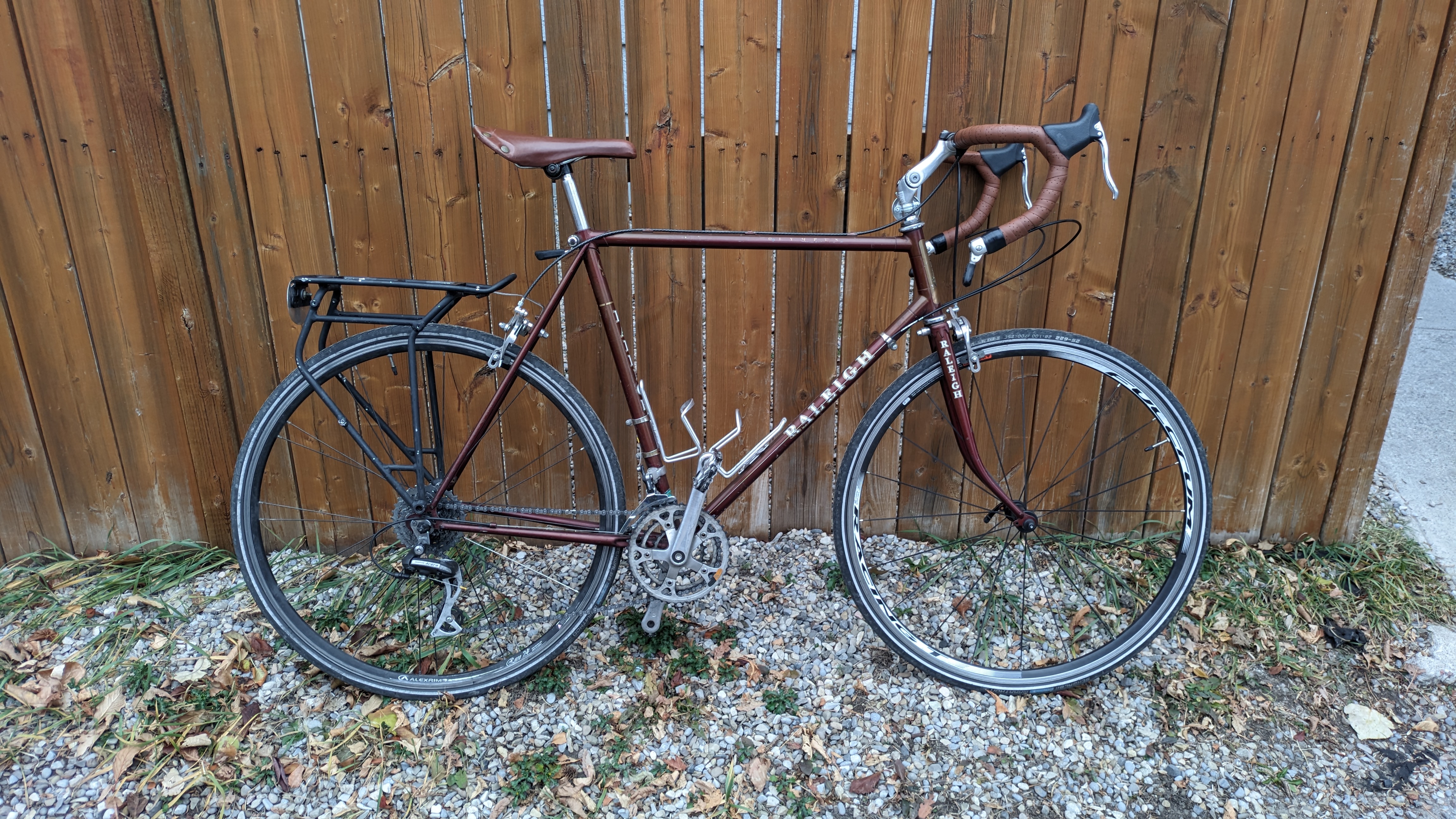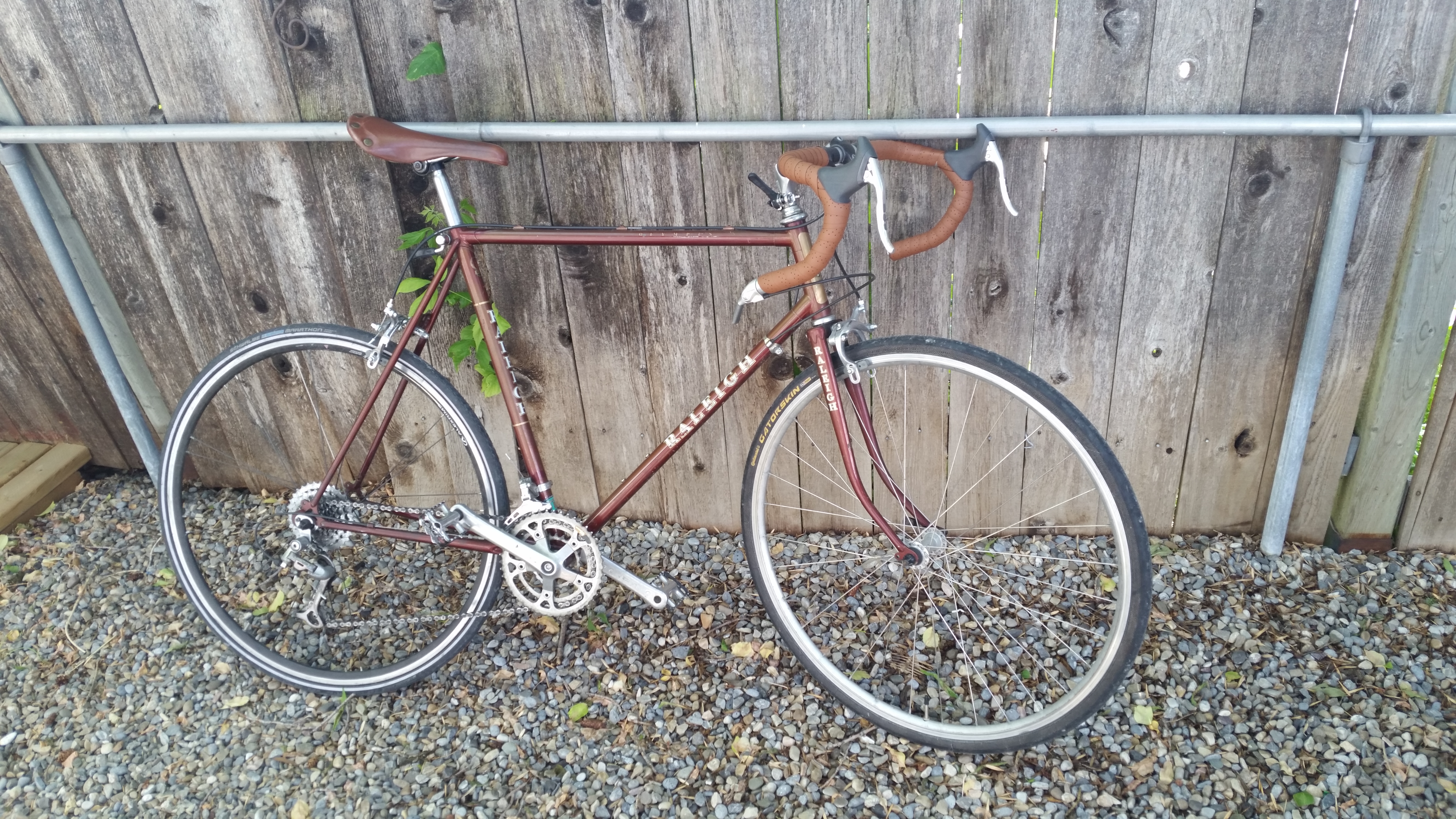 I’ve let this post languish for a long time, but now I have a years’ worth of hindsight. I’ve been riding this bike all summer, almost exclusively. It’s my commuter, grocery bike, and long-haul road bike.It’s the definition of a daily driver. It’s probably not the best choice for this purpose, what with its relatively weak brakes and friction shifting. But I think a big part of what motivates me is aesthetics. I think this thing is absolutely beautiful, and riding it around sparks a lot of joy.