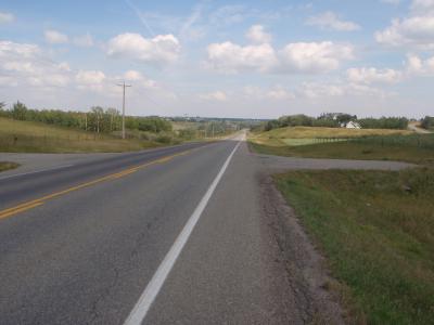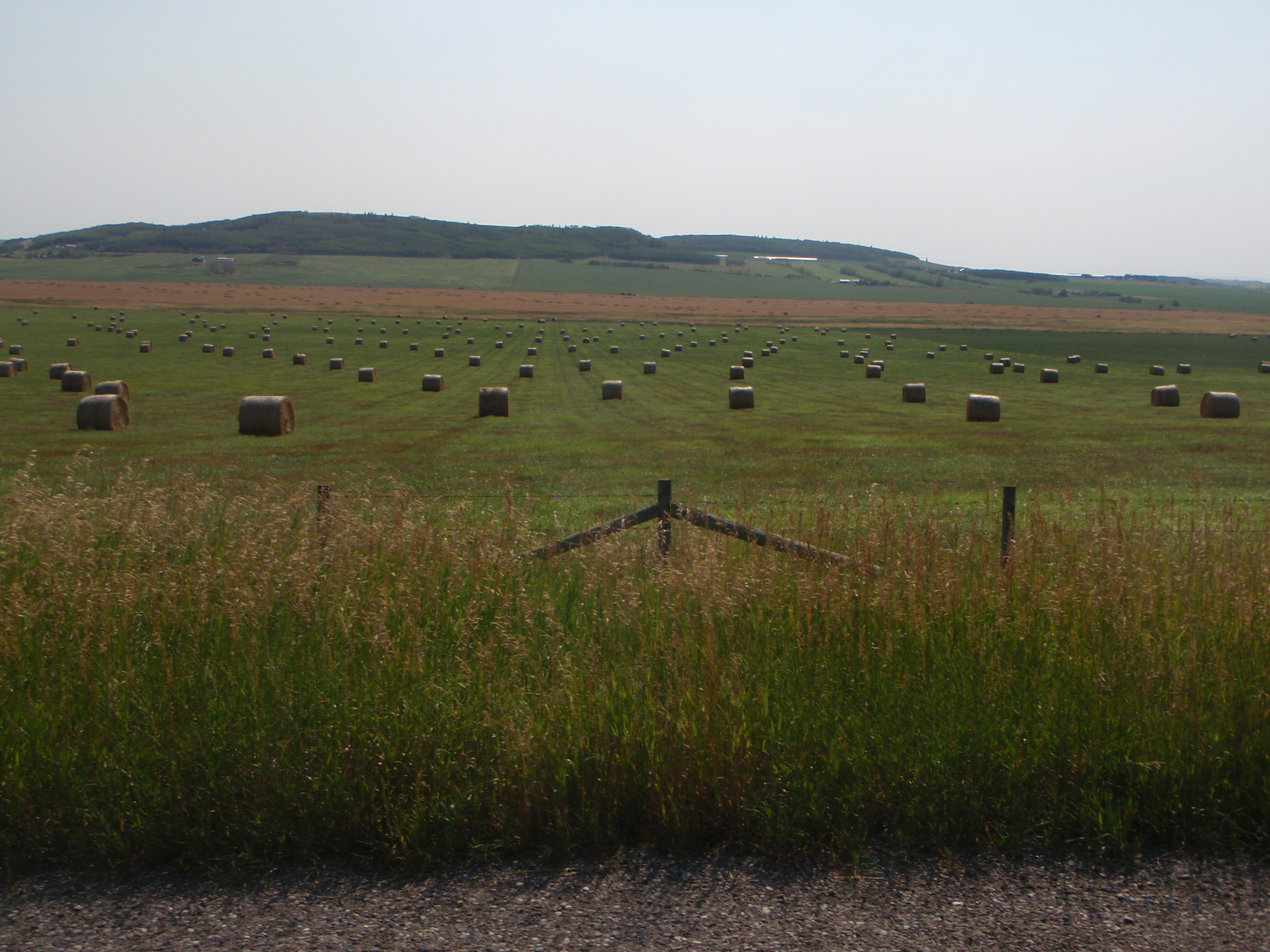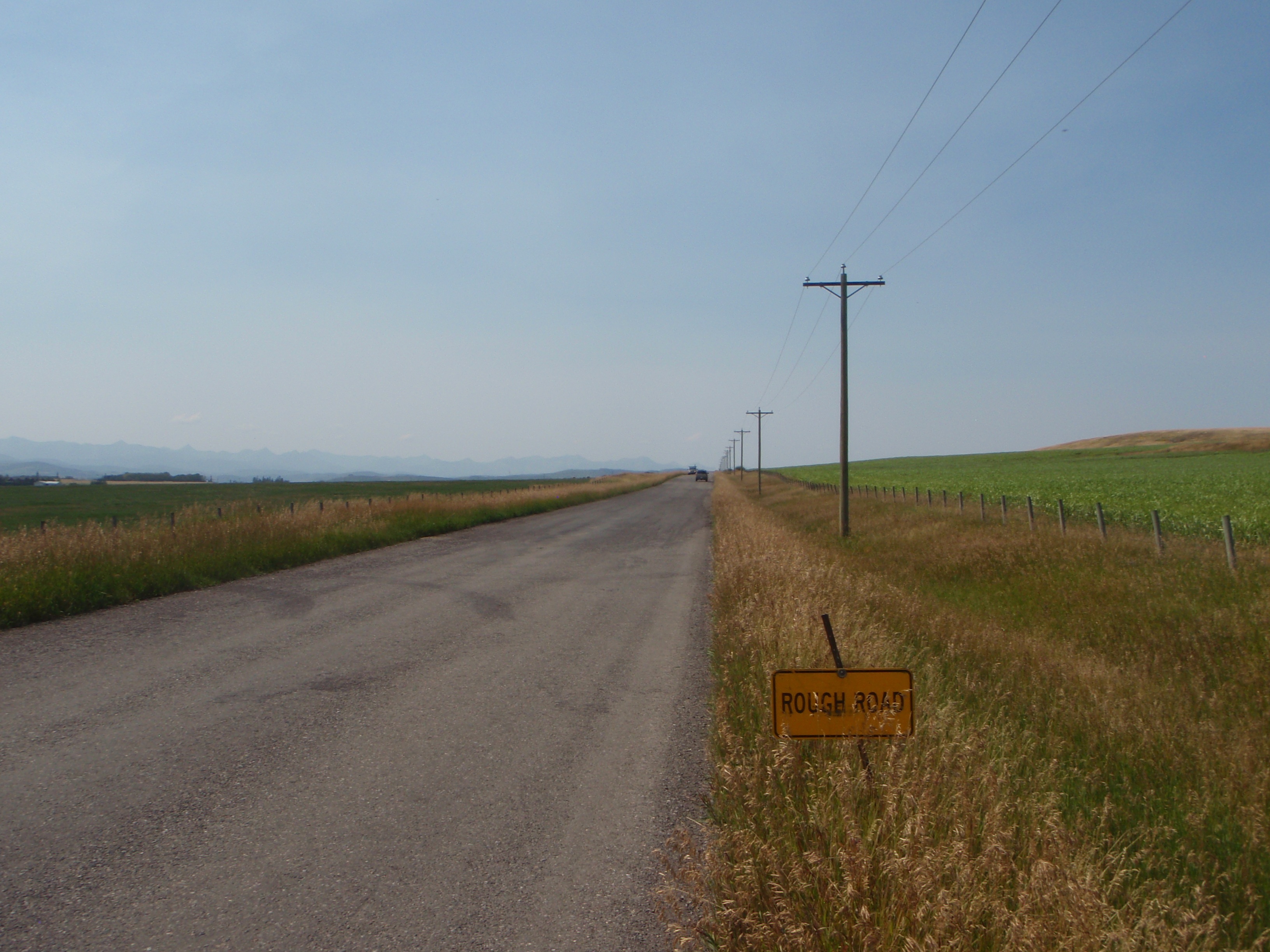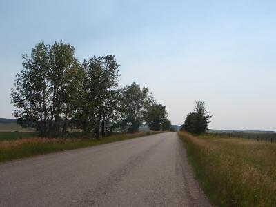 I’m a huge fan of the place where I live. It’s all prairie with a big sky and a lot of farmland. As long as you stay off the main highways, it’s also very quiet and serene. Frogs croaking in sloughs, sun-drenched fields with hay in roundbales, old rusting farm equipment used as end-of-driveway decoration, that sort of thing. I think it’s beautiful, and rolling along at bicycle-pace through it gave me a new perspective on it.