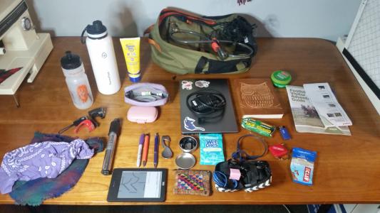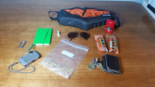 Also included are some utility items like lip balm, a small point and shoot camera, a notebook, sunglasses, and deodorant. When I was on the bike I also kept my wallet and keys in here. My phone went in a side pocket where I could easily grab it.