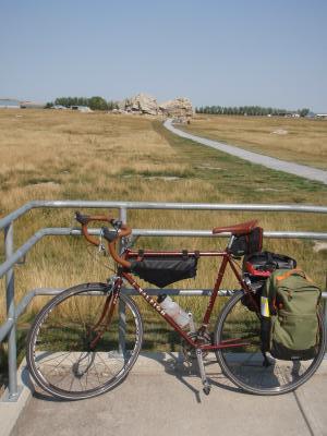 Once I was on the road, the only real mechanical issue I encountered was to do with my rear rack. It was a standard aluminum bike rack, and fit fairly narrowly on the frame. This is probably because, as I may have mentioned in my previous post on this bike, the rear dropouts were designed for a 126mm OLD. The frame had been stretched to 130mm to accommodate newer rear wheels.