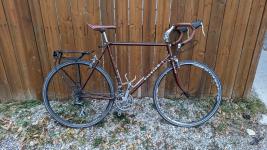 Last year, before I got super bike crazy, my mom found a strange bike at a community junk swap. It was a beautiful deep-red lugged steel Raleigh Olympus. She said she had picked it up to take home, and noticed that as she was walking it back, the cranks were slowly spinning and bumping into her leg.